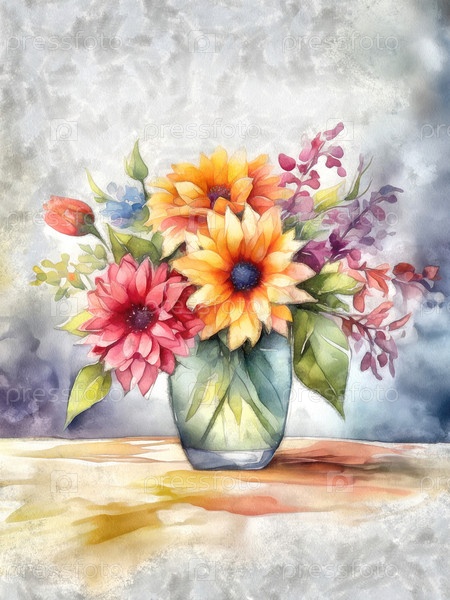 Акварельный букет цветов в вазе