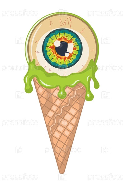Рожок мороженого с зеленым ирисом и глазным яблоком