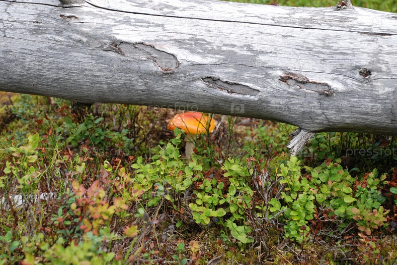 Гриб Amanita caesareoides вырос возле упавшего ствола.Цезарский мохомор