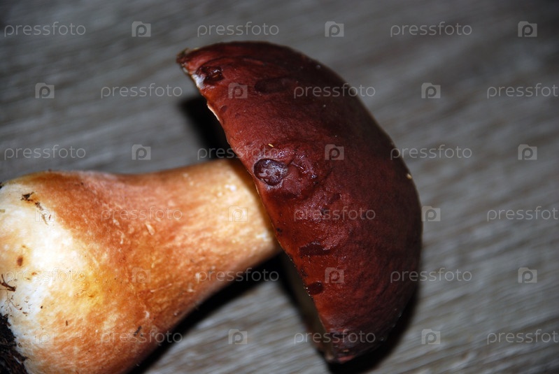 Сорванный белый гриб вырос в хвойном лесу