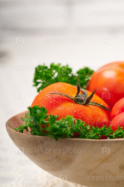 Помидоры в деревянной чаше