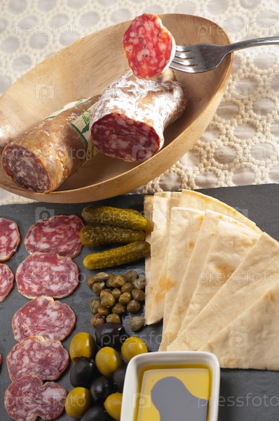 Холодная нарезка с лавашом и соленьями
