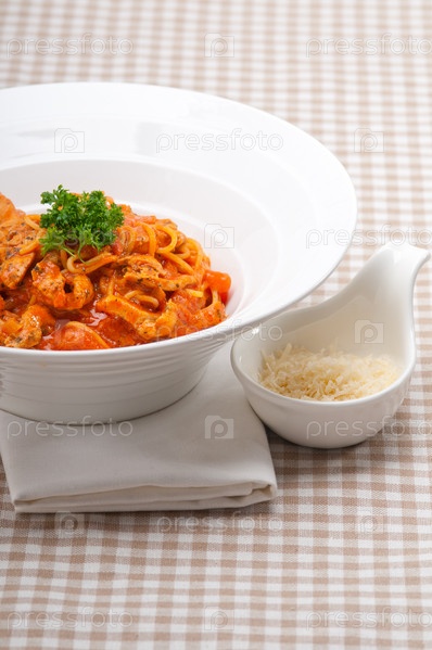 Итальянские спагетти с помидорами и курицей