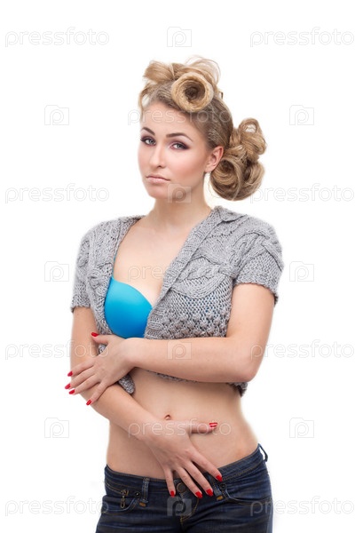 Соблазнительная девушка в синем бюстгальтере