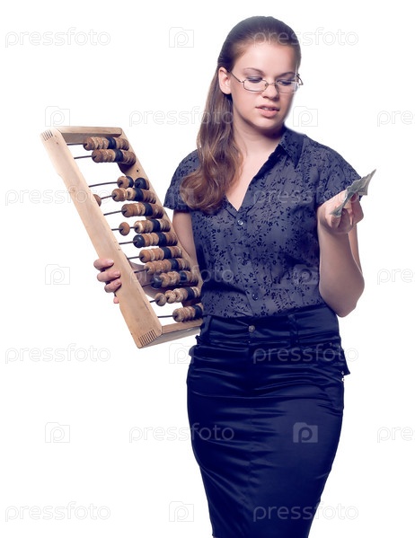 Девушка с деревянными счетами и деньгами