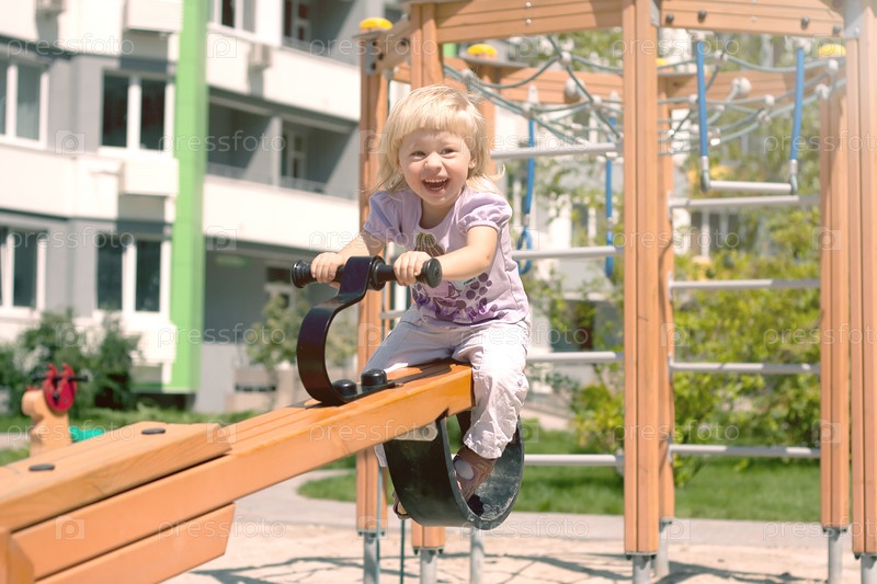 Счастливый ребенок верхом на качели