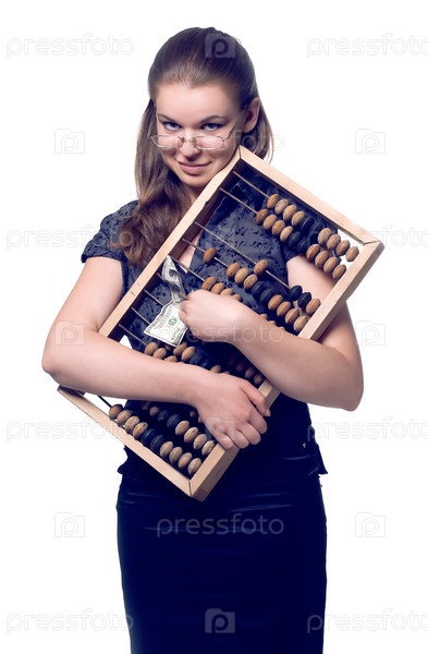 Девушка с деревянными счетами и деньгами