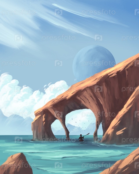 Фэнтезийная горная арка в море