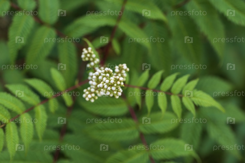 Белые бутоны на фоне зеленых листьев