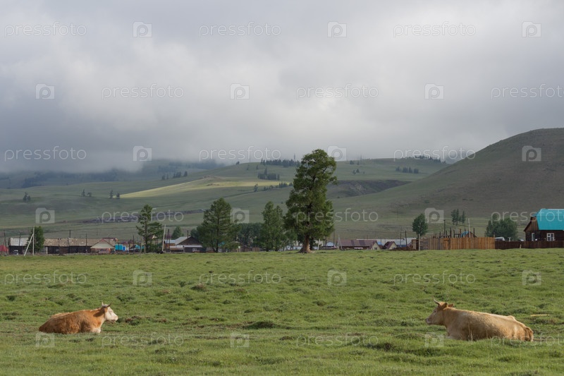 Коровы отдыхают в горах