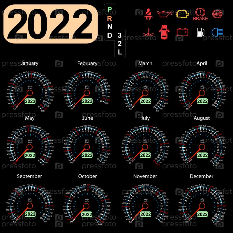 Календарь 2022 года со спидометра приборной панели автомобиля