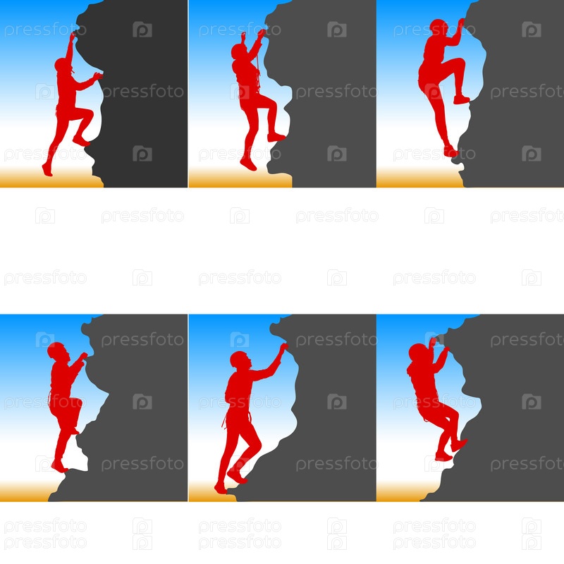 Черный силуэт скалолаза на белом фоне