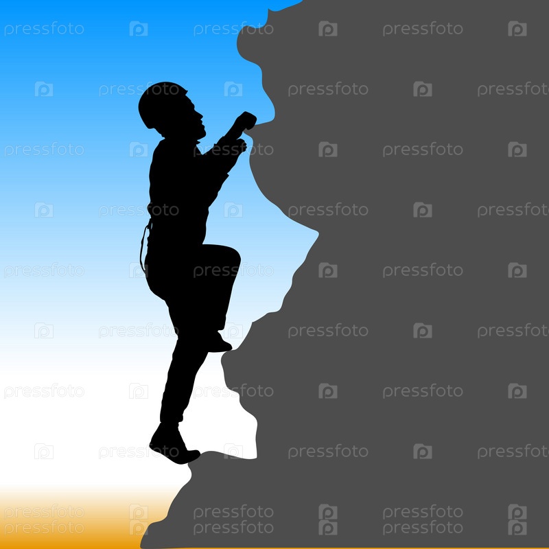 Черный силуэт скалолаза на белом фоне
