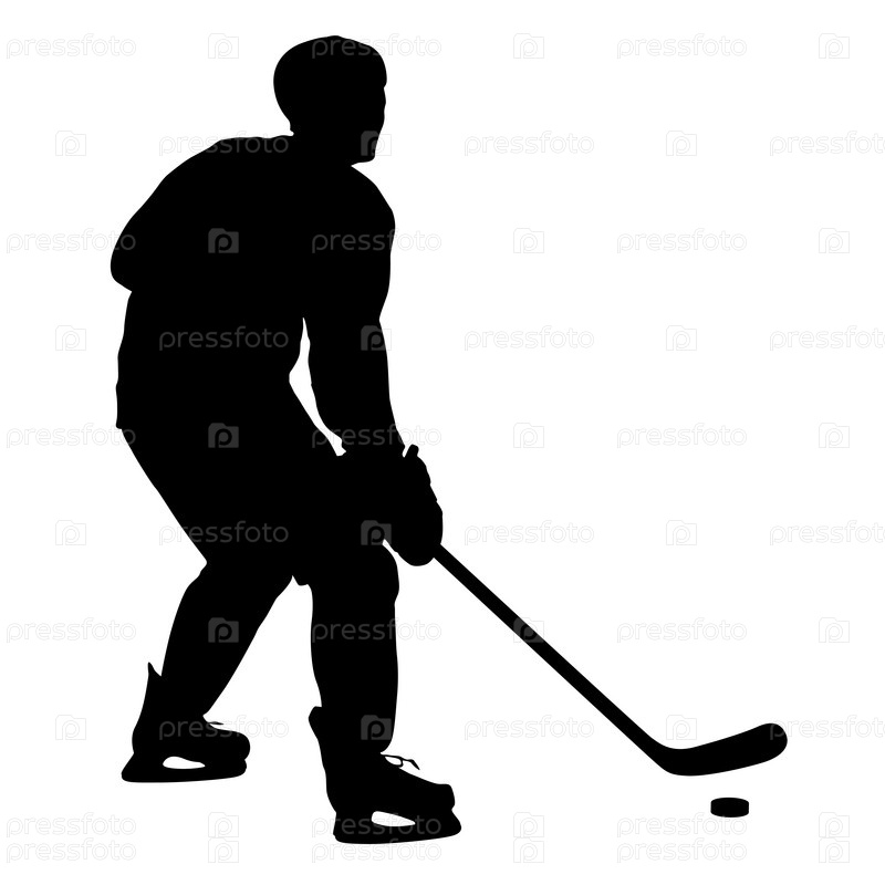 Силуэт хоккеиста на белом фоне