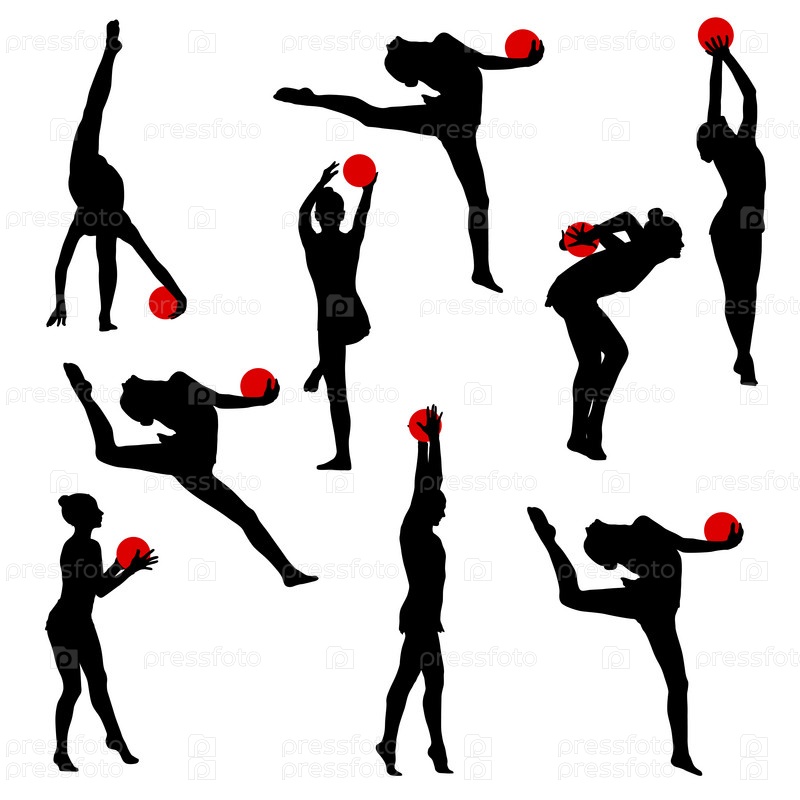 Установите силуэт девушки-гимнастки с мячом на белом фоне