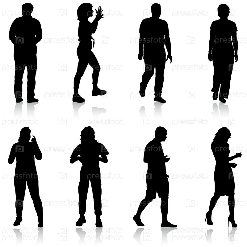 Силуэт группы людей, стоящих на белом фоне