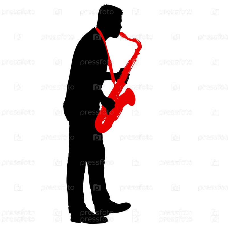 Силуэт музыканта, играющего на саксофоне на белом фоне