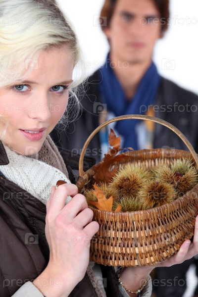 Пара собирает каштаны