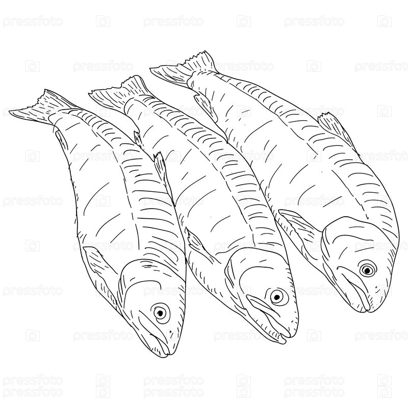 Коллекция эскизов натуральных морских рыб на белом фоне