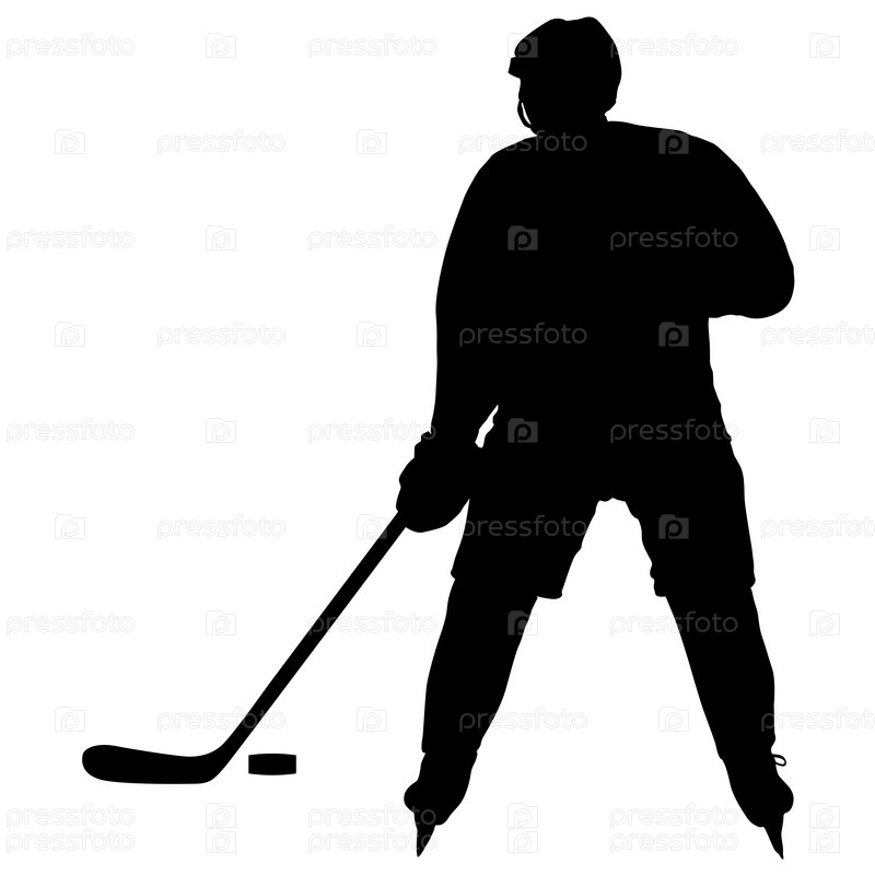 Силуэт хоккеиста. Изолированные на белом