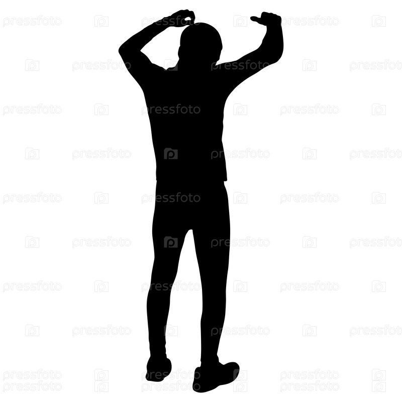 Черные силуэты человека с поднятой рукой на белом фоне