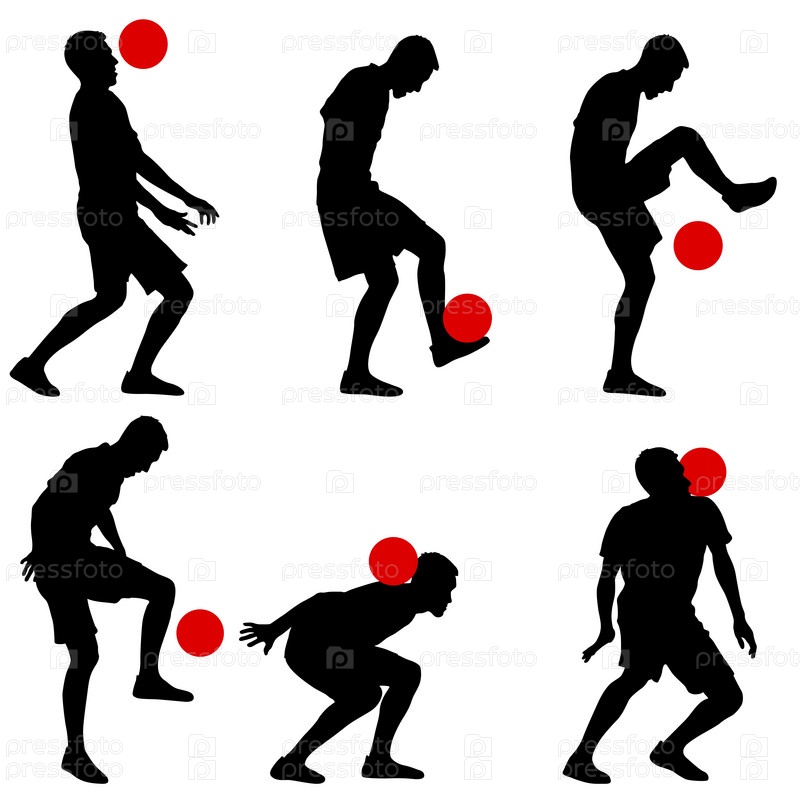 Установите силуэты футболистов с мячом на белом фоне