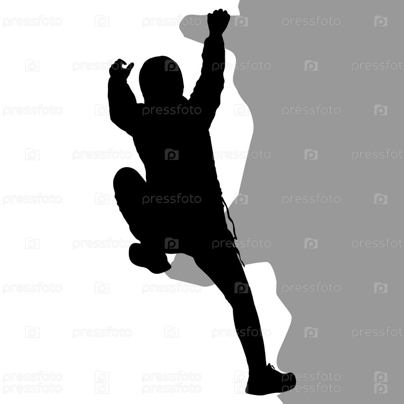 Черный силуэт скалолаза на белом фоне