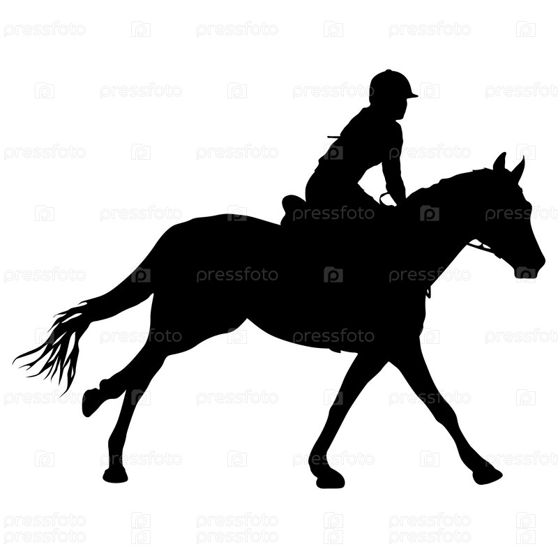 Силуэт лошади и жокея на белом фоне