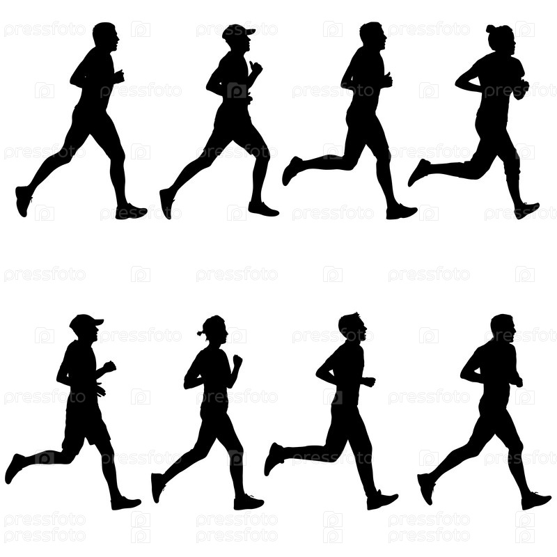 Набор силуэтов. Бегуны на спринте мужчины и женщины