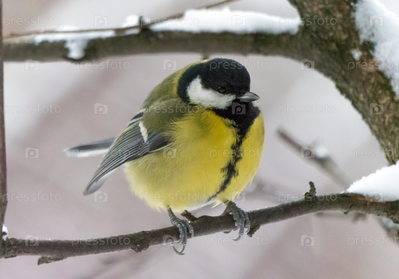 Птицы под Москвой, желтая овсянка на ветке дерева