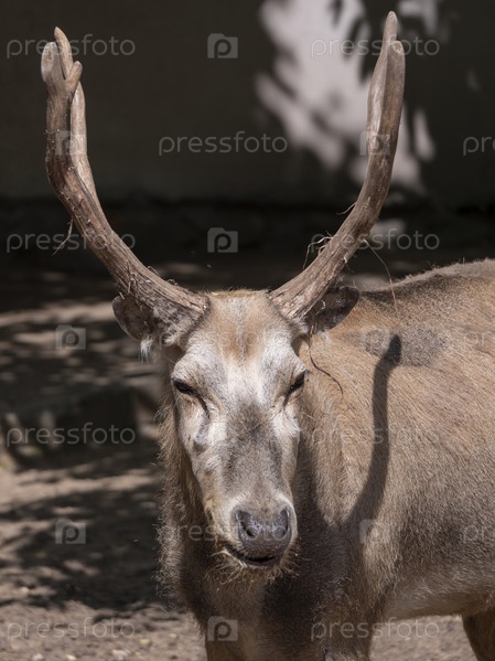 Портрет старого оленя в профиль летом
