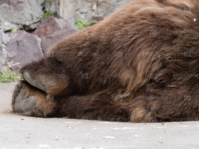 Коричневый медведь Ursus arctos спит, вытянув лапы