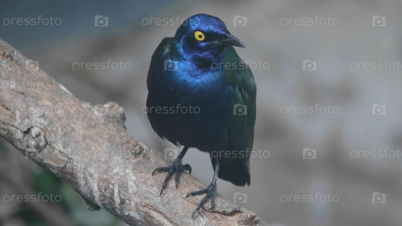 Скворец фиолетовый блестящий ест фрукты на ветке