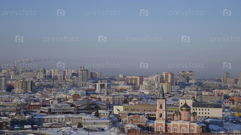 Город Барнаул, вид на город и церковь, Алтай, Россия