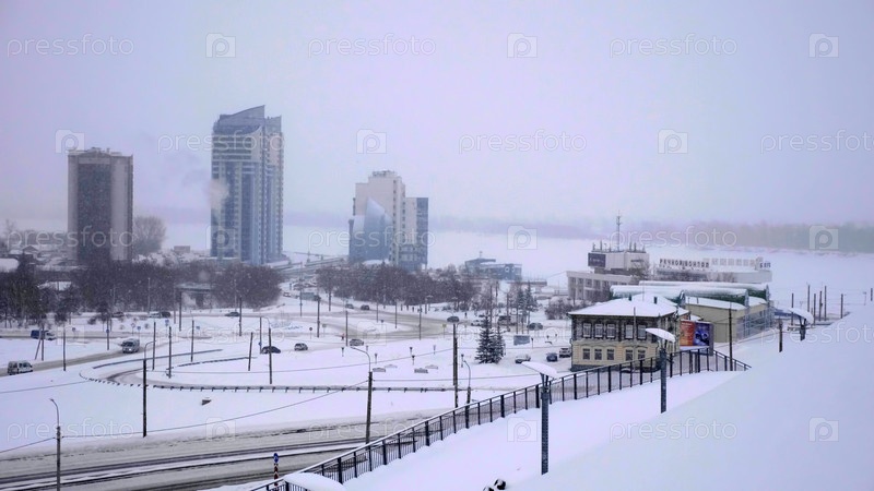 БАРНАУЛ - 21 ЯНВАРЯ здание речного вокзала зимой на берегу реки Обь 21 января 2018 года в Барнауле, Россия