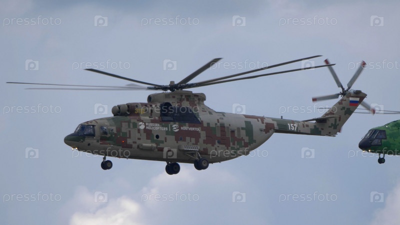ЖУКОВСКИЙ, РОССИЯ - 01 СЕНТЯБРЯ 2019 г.: Демонстрация вертолетов Ми-38 и Ми-26 ВВС России на МАКС-2019, Россия