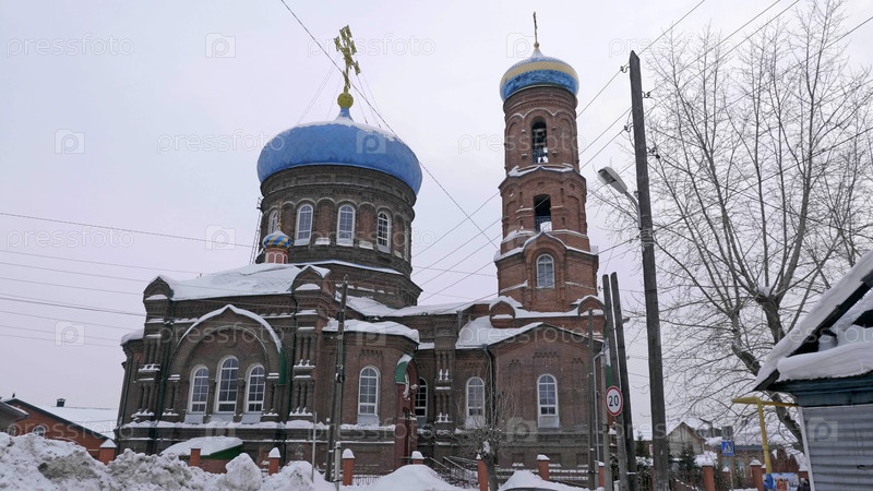 Барнаул, Россия, 20 ЯНВАРЯ 2020 г. Покровский собор на улице Никитина в Барнауле зимой, Россия