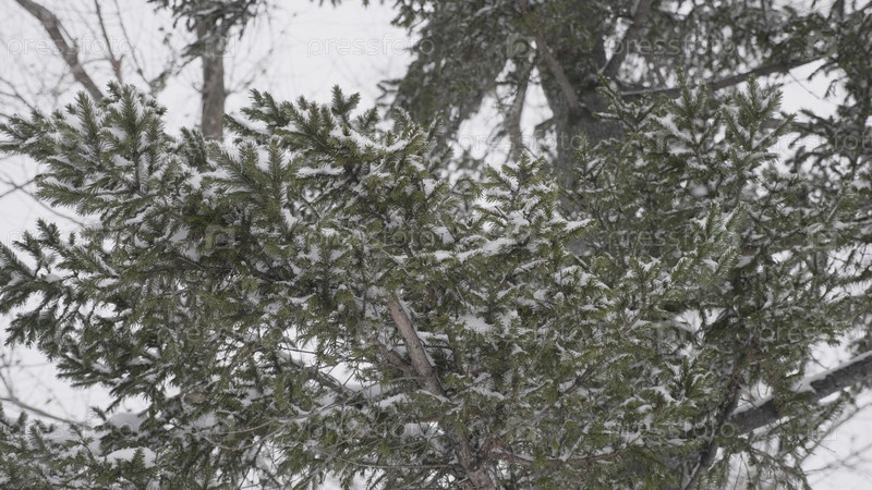 Зимний лес во время снегопада