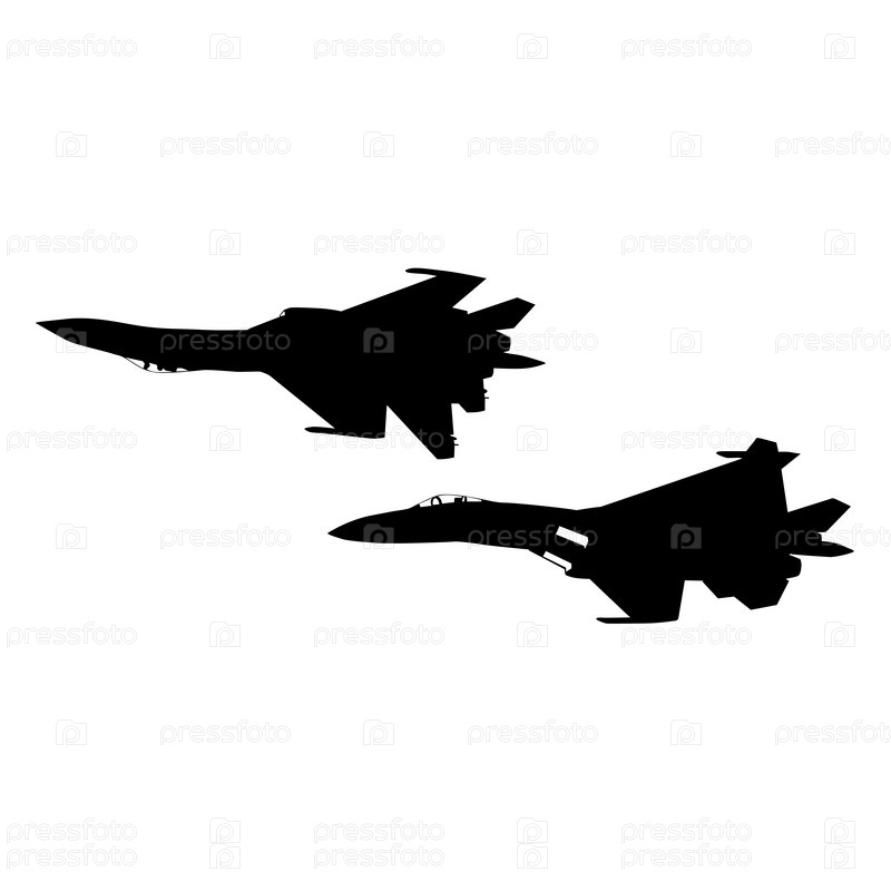 Установите силуэт военного боевого самолета на белом фоне