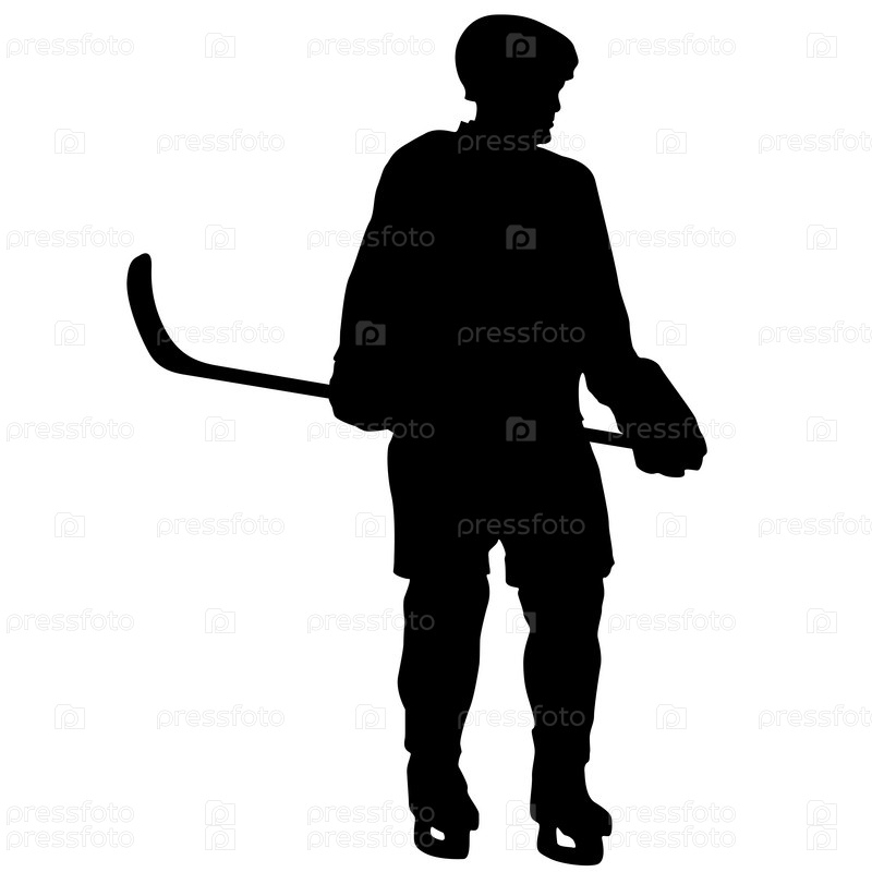 Силуэт хоккеиста на белом фоне