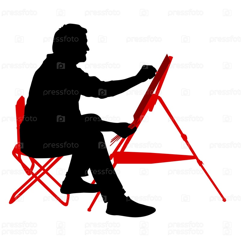 Силуэт, художник за работой на белом фоне