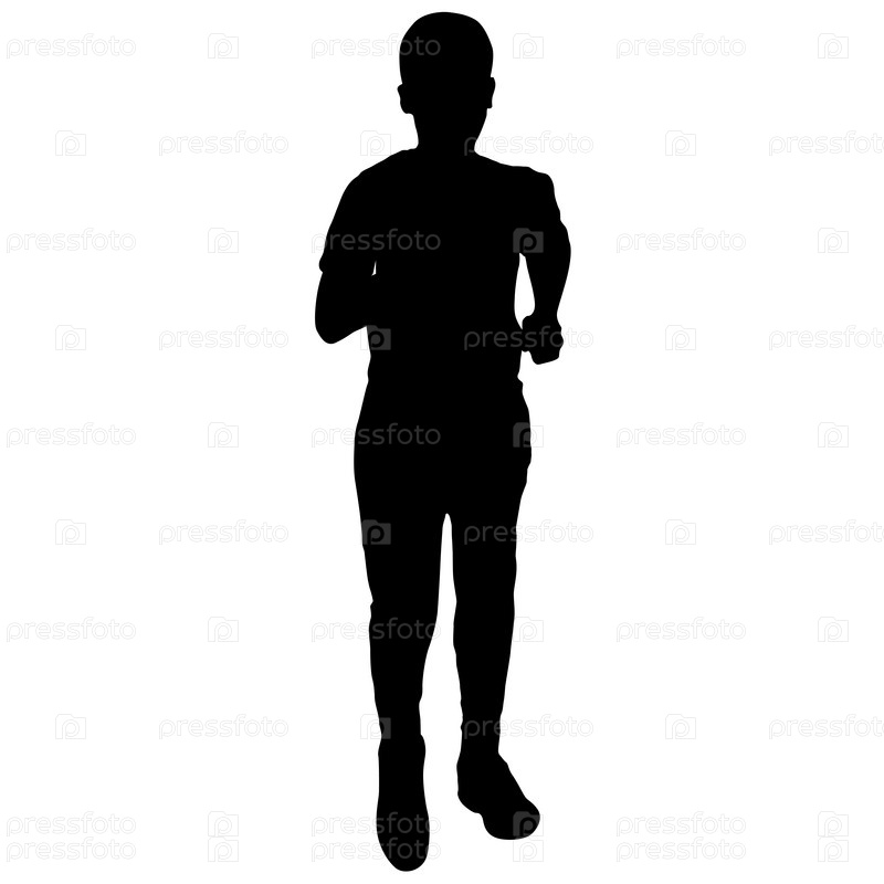 Черные силуэты бегунов на белом фоне