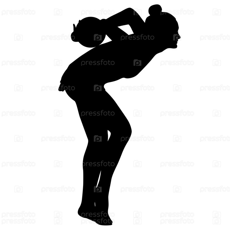 Силуэт девушки-гимнастки с мячом на белом фоне