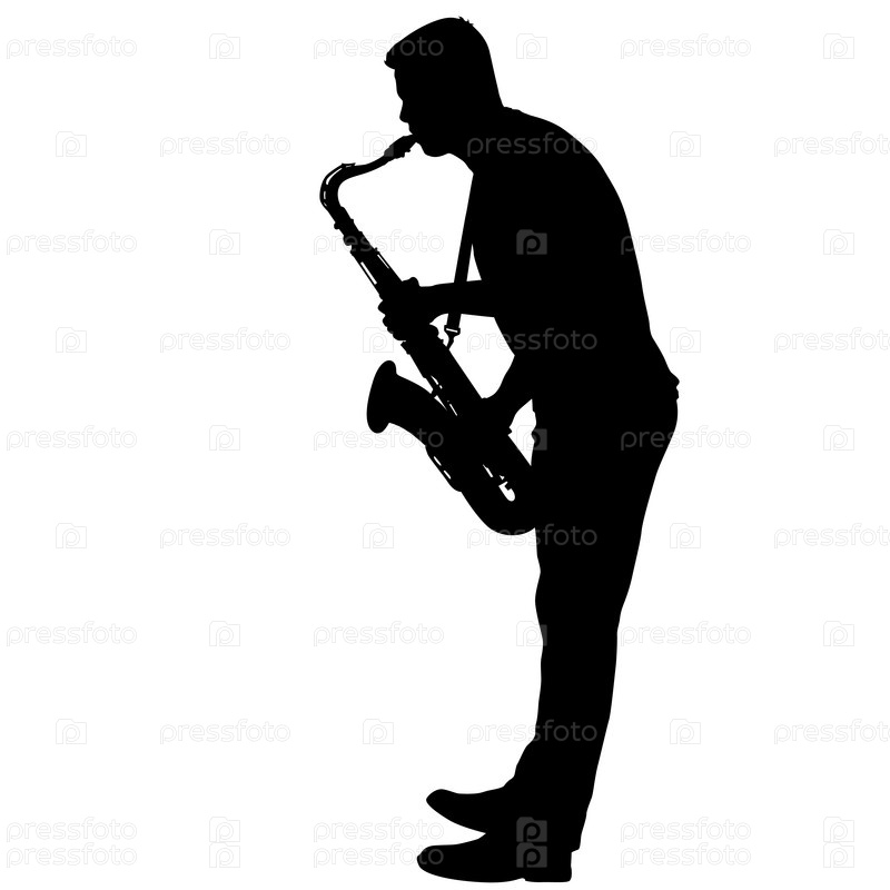Силуэт музыканта, играющего на саксофоне на белом фоне