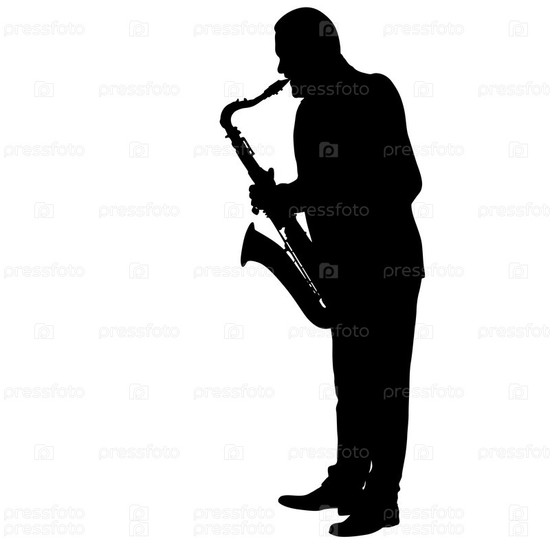 Силуэт музыканта, играющего на саксофоне на белом фоне