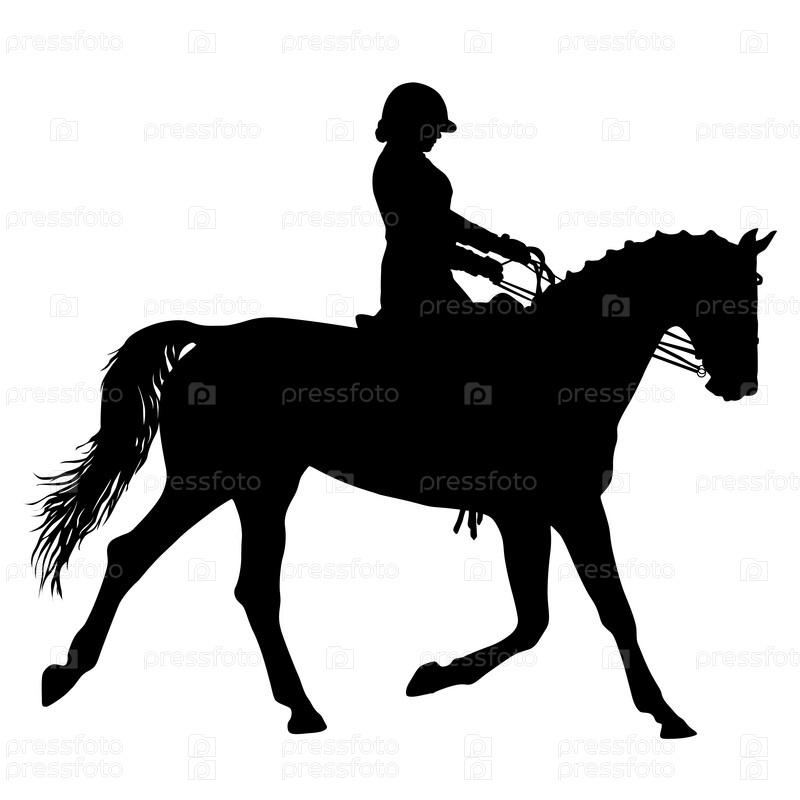 Черный силуэт лошади и жокея