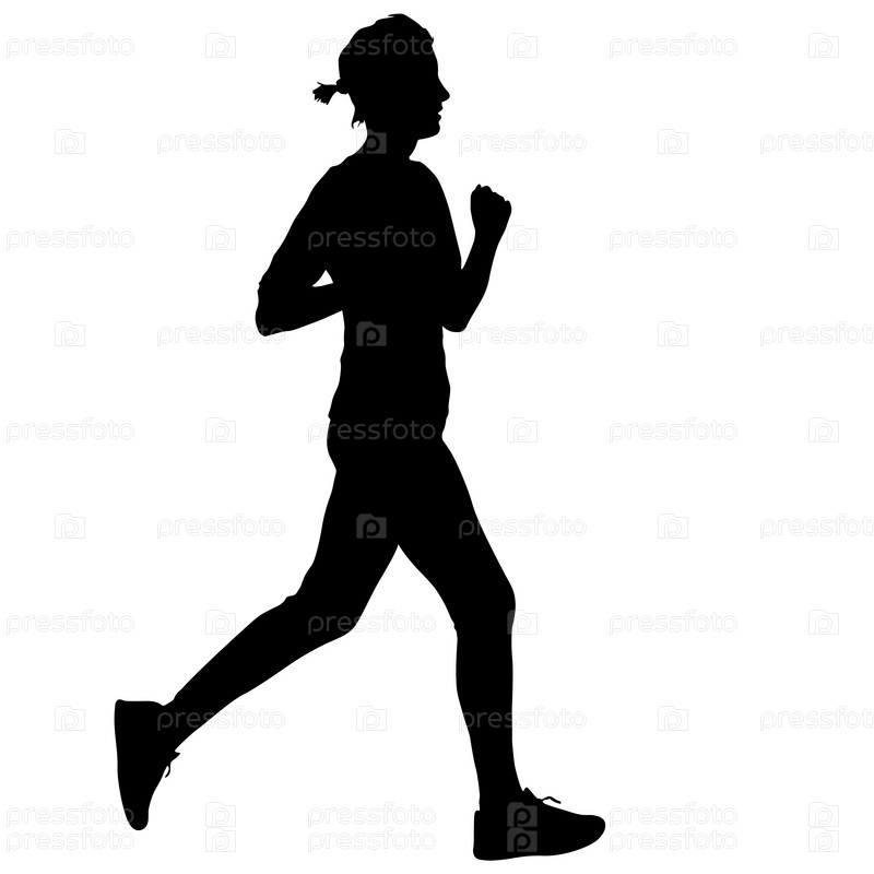 Черные силуэты бегунов спринтерских женщин на белом фоне