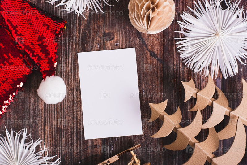 Пустой лист для списка подарков в рождественских украшениях на столе