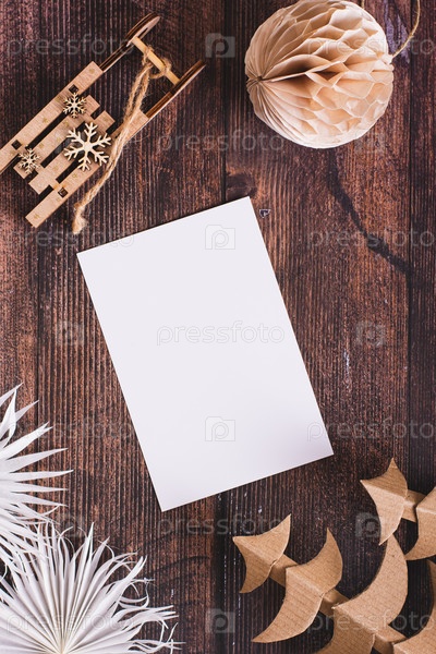Пустой лист для списка подарков в домашних рождественских украшениях на столе и вертикальном виде