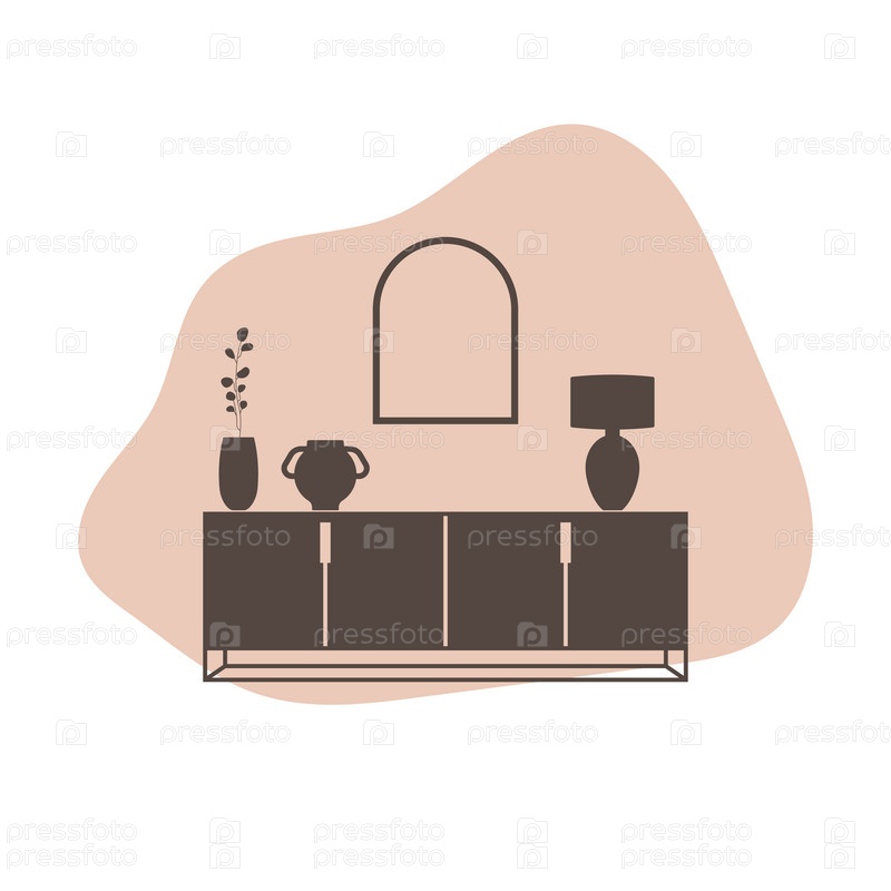 Фрагмент интерьера гостиной с мебелью и декоративными элементами. Мебельная иконка